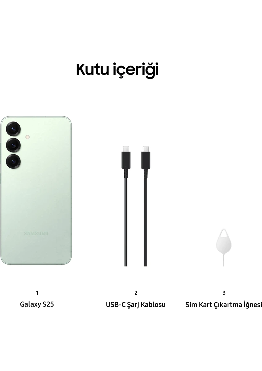 Samsung Galaxy S25, orijinal kapalı kutusunda, jelatini açılmamış şekilde gönderilmektedir. Ürün, Samsung Türkiye distribütörü garantisi altındadır ve 2 yıl (24 ay) boyunca yetkili servis desteği sunulmaktadır.